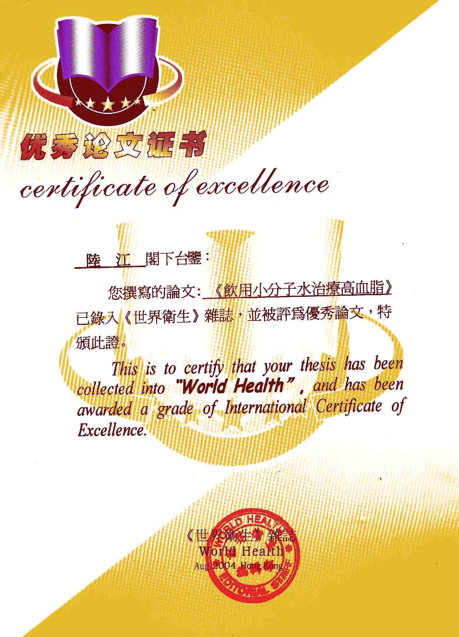 一、創(chuàng)造了在家在職場(chǎng)使用方便的微小分子團(tuán)水器具。在世界上首先用此理療方法,大規(guī)模地成功地逆轉(zhuǎn)和消除動(dòng)脈粥樣硬化,確實(shí)祛俆高血壓和冠心病與糖尿病,使患者恢復(fù)動(dòng)脈和心臟及胰島的健康,可消除因細(xì)胞缺水使器官衰弱而形成多種器官的缺水性病癥,并使健康人可預(yù)防和減緩動(dòng)脈粥樣硬化,減少心腦血管病,具有重大的社會(huì)經(jīng)濟(jì)和戰(zhàn)略意義。