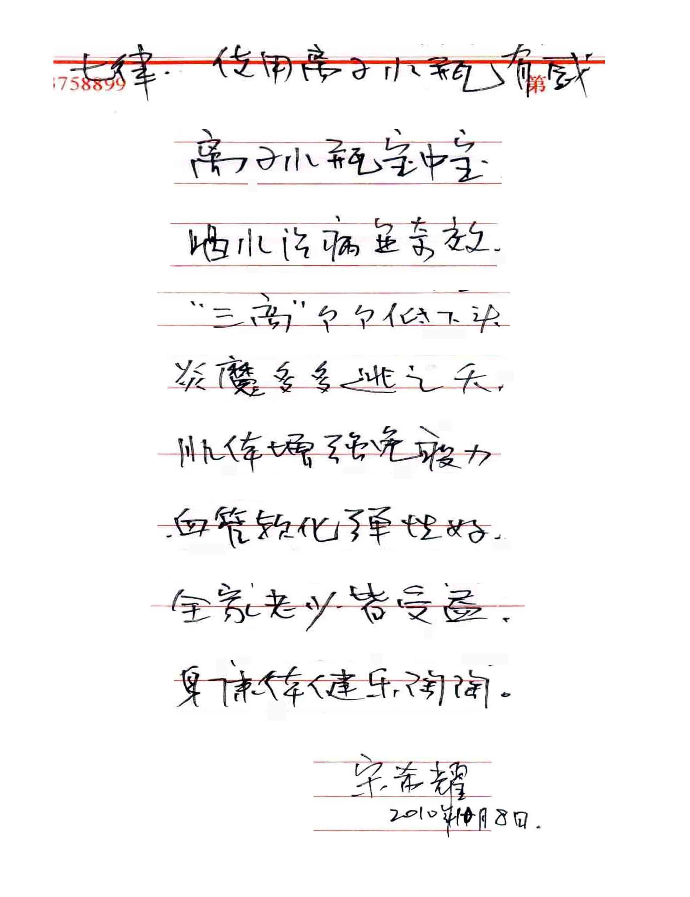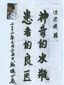 凡尊重中國(guó)古代養(yǎng)生智慧的患者,堅(jiān)持“已饑方食”和定時(shí)主動(dòng)補(bǔ)水者,均可祛病康復(fù)。如牡丹江醫(yī)學(xué)院87歲的張鵬圖飲用半年后高血壓未痊愈,陸江與他通話交流,了解他原先每日主食4兩,建議他用“已饑方食”減少主食肉食量,他理解后,將每日主食減為3兩,少吃兩塊肉,飲用一年治愈26年的冠心病和高血壓。他2003年5月31日來信說:“飲用卓康小分子團(tuán)水是根治高血壓、冠心病、糖尿病的一把金鑰匙,是填補(bǔ)醫(yī)學(xué)空白,為人類造福,應(yīng)推廣該產(chǎn)品。”