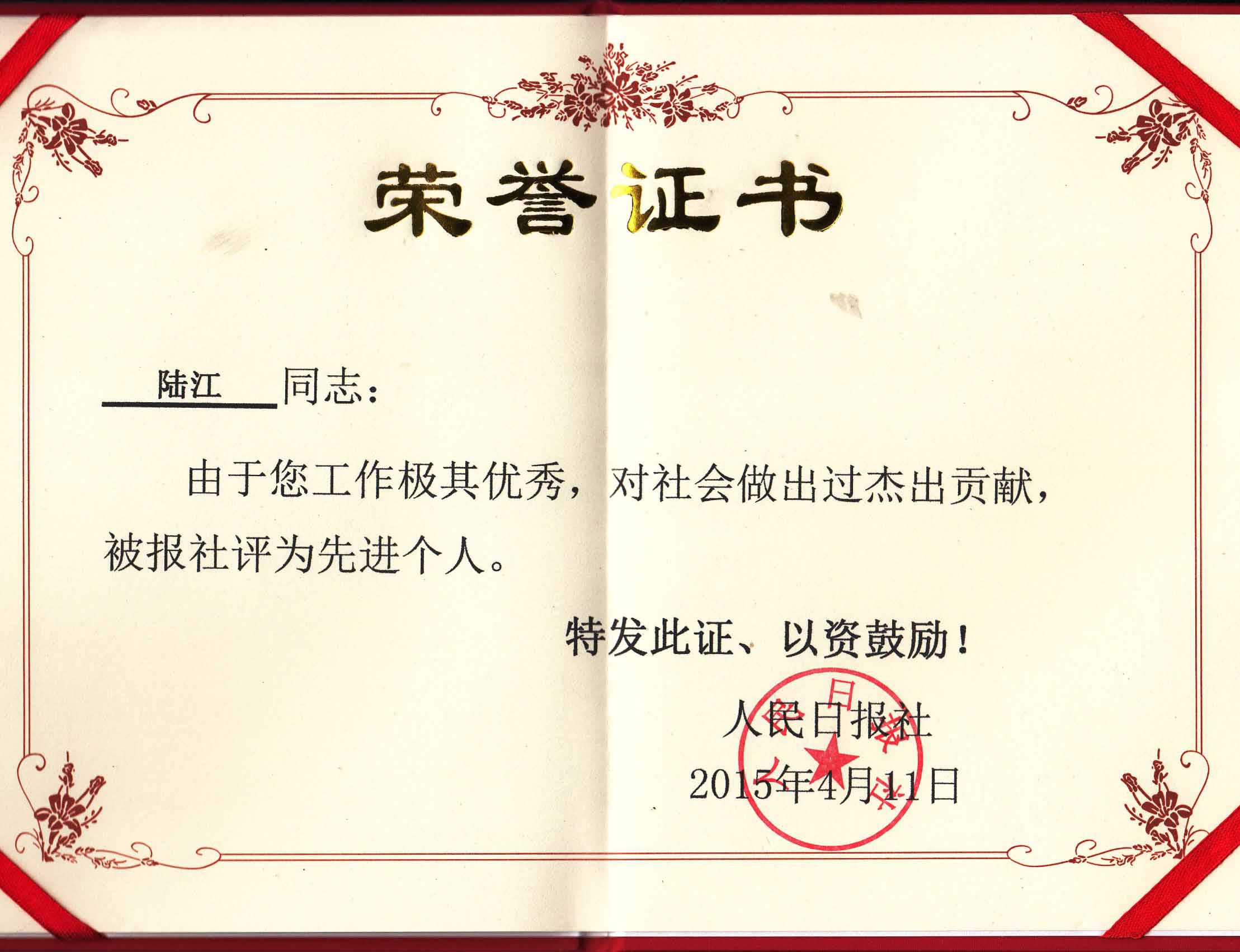陸江的論文獲一等獎(jiǎng)榮譽(yù)證書-- 陸江論文獲創(chuàng)新論文獎(jiǎng)牌