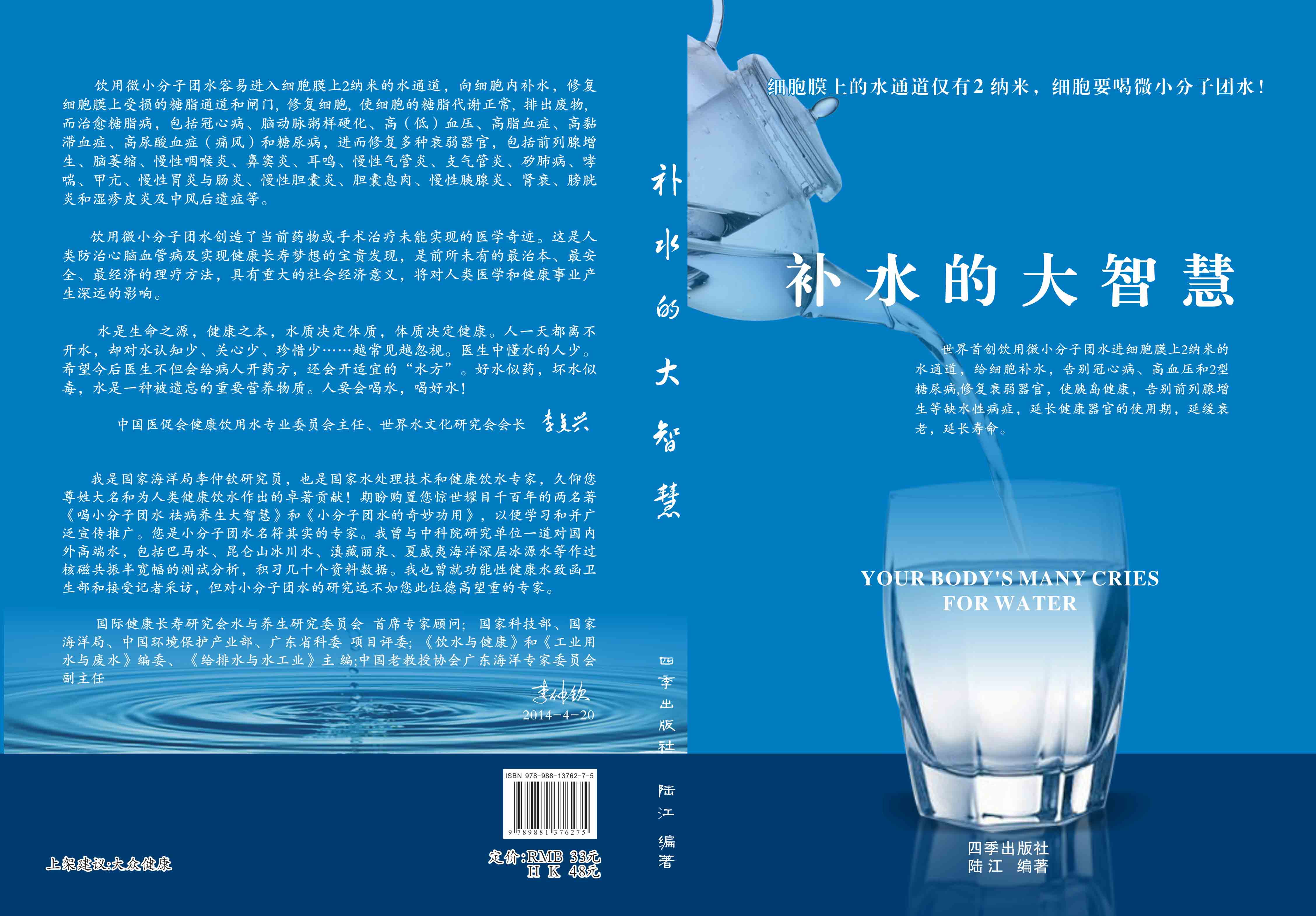----幾千年來,人們感到口渴才喝水,誤認(rèn)為口渴是唯一的缺水信號(hào),使喝水量偏少。很多人只知道補(bǔ)血補(bǔ)氣補(bǔ)腎補(bǔ)鈣補(bǔ)硒,而不知補(bǔ)水,逐漸使許多器官缺水,包括皮膚、動(dòng)脈、氣管、膽囊、腸胃、骨關(guān)節(jié)、腎臟、前列腺和胰島缺水,以致患冠心病、高(低)血壓和糖尿病等缺水性病癥。美國(guó)F·巴特曼醫(yī)學(xué)博士寫有《水是最好的藥》一書很受歡迎,我國(guó)2007年譯成中文版,論述人體缺水引起許多病癥,他指導(dǎo)3000多患者喝水治愈了哮喘、胃炎和高血壓等病癥。而我是從2000年起,讓患者飲用微小分子團(tuán)水,因?yàn)槿菀走M(jìn)細(xì)胞膜上2納米的水通道,治愈了許多缺水性的病。我跟蹤調(diào)查14年,發(fā)現(xiàn)凡是認(rèn)真飲用和合理膳食,可治愈冠心病、高(低)血壓和2型糖尿病與衰弱器官并發(fā)癥及中風(fēng)后遺癥。高血壓患者飲用2~5個(gè)月,癥狀消除,不再服藥,逐漸逆轉(zhuǎn)至消除動(dòng)脈粥樣硬化,血壓正常穩(wěn)定,治愈了高血壓;冠心病人飲用3~5個(gè)月,消除心絞痛、房顫等癥狀,不再服藥,一年左右心電圖正常,經(jīng)冠狀動(dòng)脈造影掃描表明冠脈內(nèi)無粥樣斑塊,真正治愈了冠心病;2型糖尿病人飲用3~10個(gè)月停藥,血糖尿糖正常,糖尿病痊愈。并且使前列腺增生、慢性咽喉炎、鼻竇炎、耳鳴、慢性氣管炎、支氣管炎、哮喘、矽肺病、慢性胃腸炎、膽囊炎、胰腺炎、腎衰、膀胱炎、風(fēng)濕性關(guān)節(jié)炎、便秘、痔瘡和濕疹皮炎等不藥而愈,而無需終生服藥。飲用微小分子團(tuán)水治愈的是長(zhǎng)期吃藥治不好的病,彌補(bǔ)了幾千年來醫(yī)藥的欠缺,成為人類健康的寶貴資源。