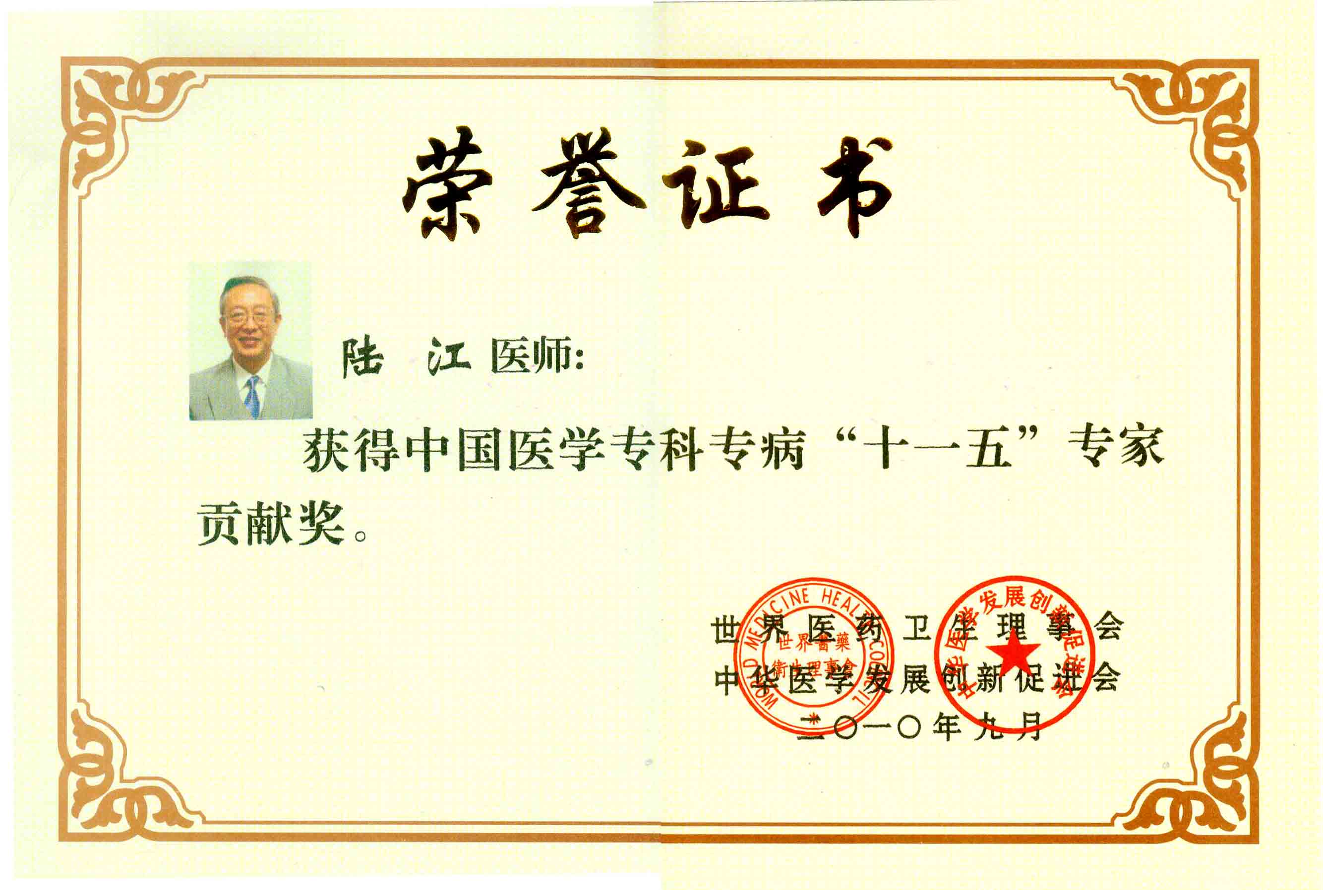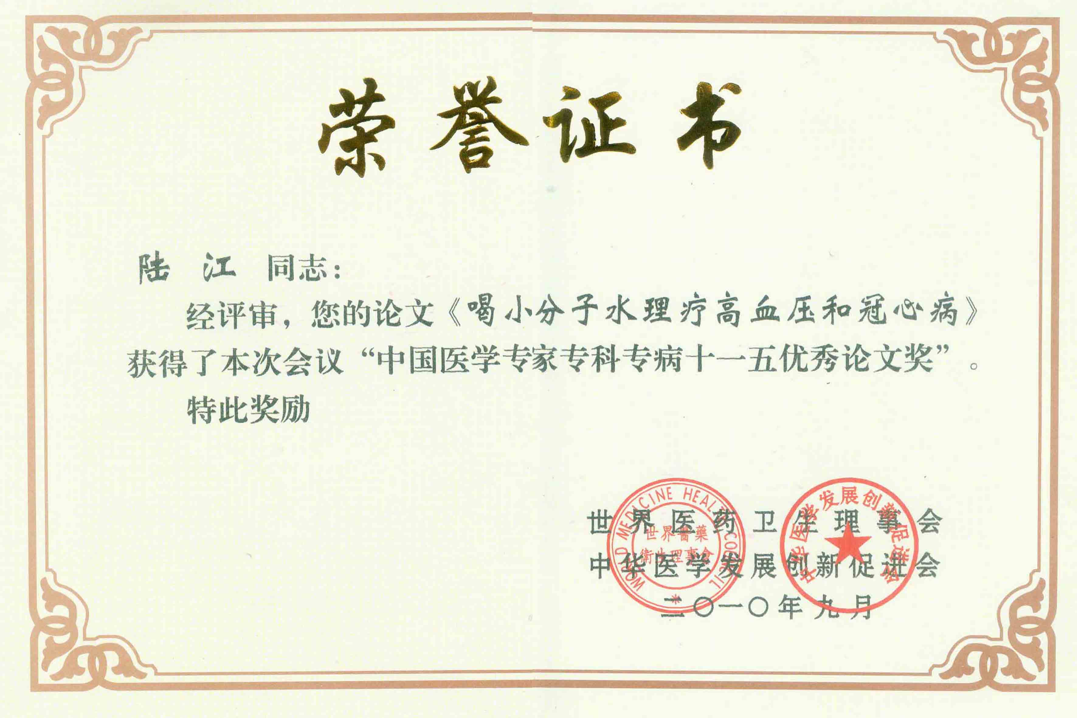 陸江獲得中國(guó)醫(yī)學(xué)專科專病優(yōu)秀專家恃別貢獻(xiàn)獎(jiǎng)